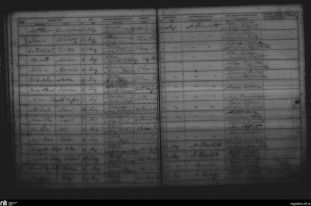St. Andrew's, Dublin city; County of Dublin; Archdiocese of Dublin. Baptisms, Aug. 1877