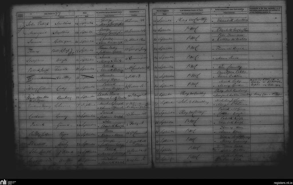 St. Andrew's, Dublin city; County of Dublin; Archdiocese of Dublin. Baptisms, Sep. 1877