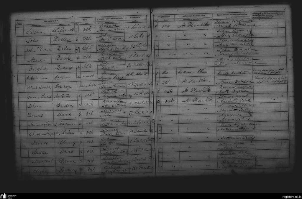 St. Andrew's, Dublin city; County of Dublin; Archdiocese of Dublin. Baptisms, Oct. 1877