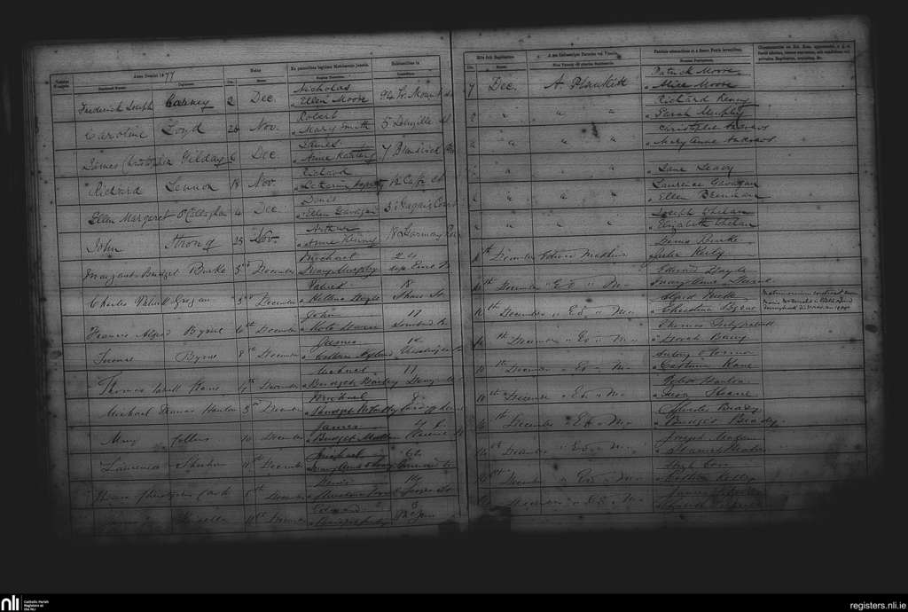 St. Andrew's, Dublin city; County of Dublin; Archdiocese of Dublin. Baptisms, Dec. 1877