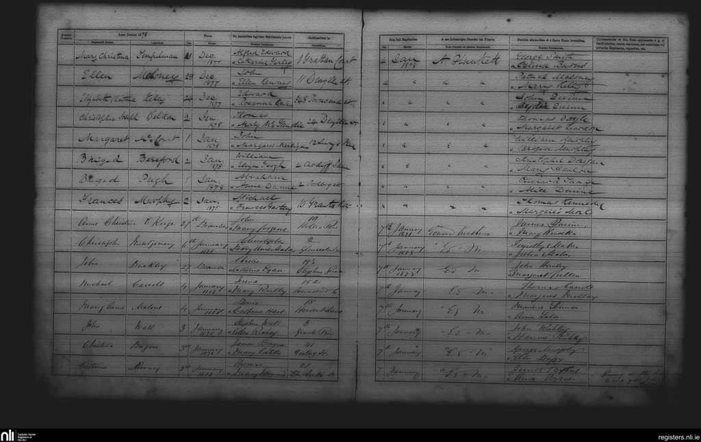 St. Andrew's, Dublin city; County of Dublin; Archdiocese of Dublin. Baptisms, Jan. 1878