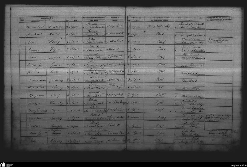 St. Andrew's, Dublin city; County of Dublin; Archdiocese of Dublin. Baptisms, Apr. 1878