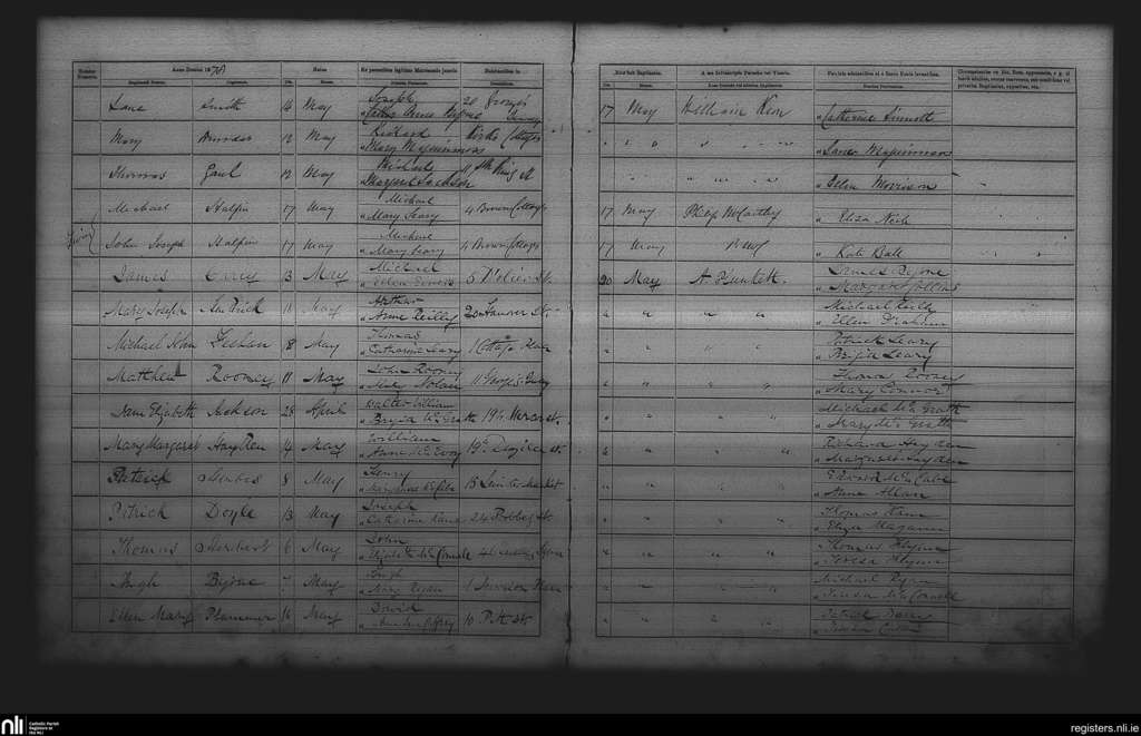 St. Andrew's, Dublin city; County of Dublin; Archdiocese of Dublin. Baptisms, May 1878