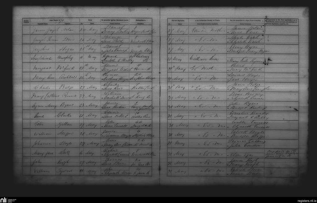 St. Andrew's, Dublin city; County of Dublin; Archdiocese of Dublin. Baptisms, May 1878