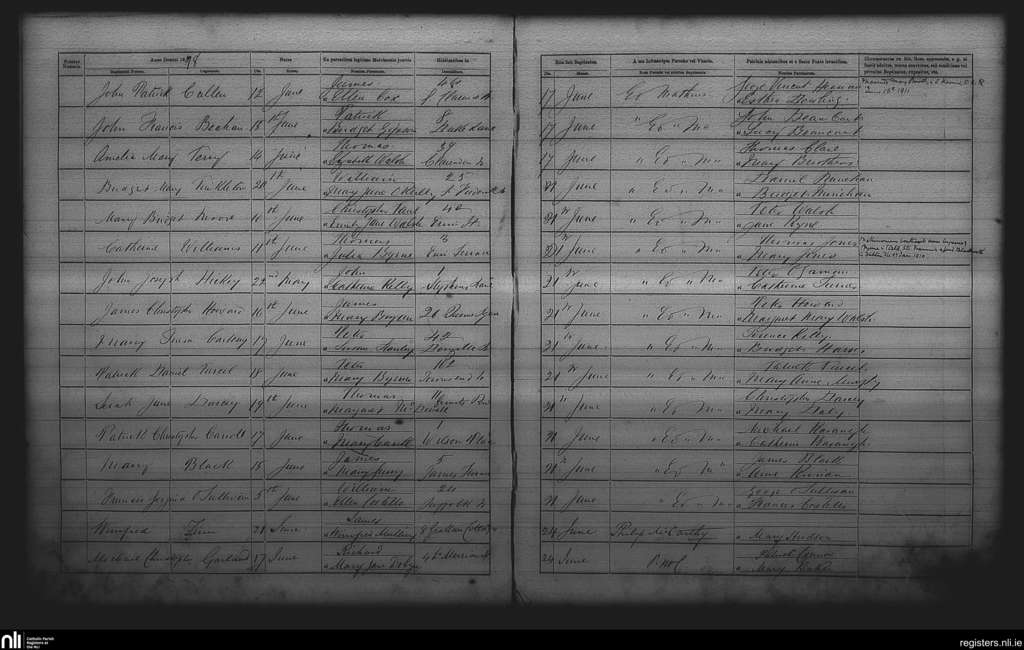 St. Andrew's, Dublin city; County of Dublin; Archdiocese of Dublin. Baptisms, June 1878