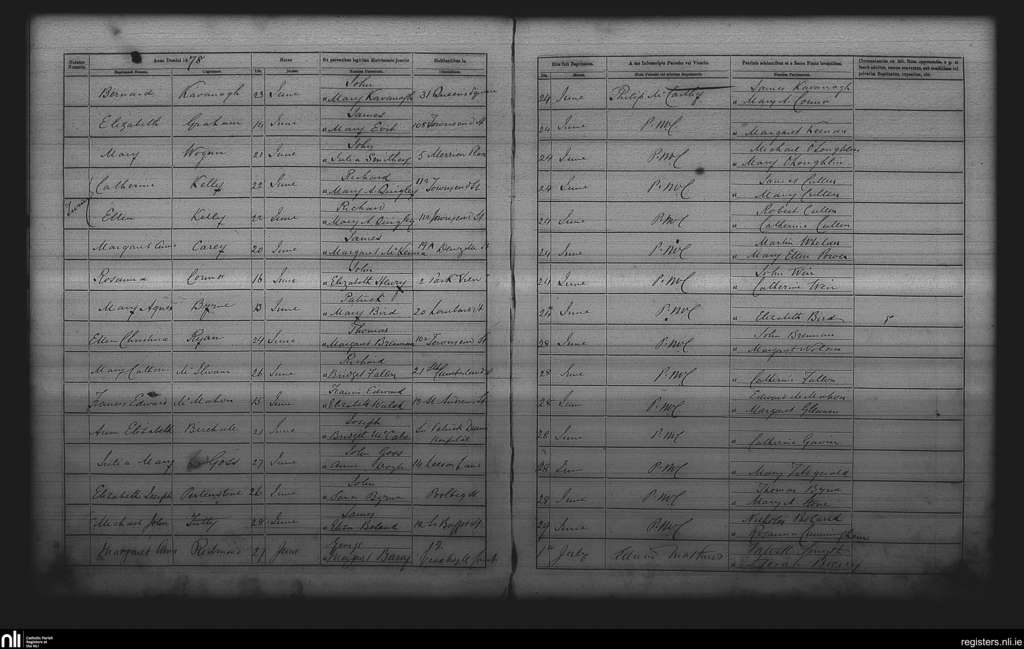 St. Andrew's, Dublin city; County of Dublin; Archdiocese of Dublin. Baptisms, June 1878 to July 1878