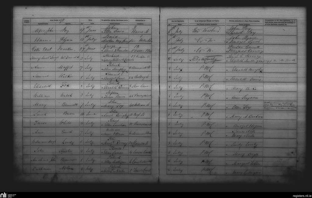 St. Andrew's, Dublin city; County of Dublin; Archdiocese of Dublin. Baptisms, July 1878