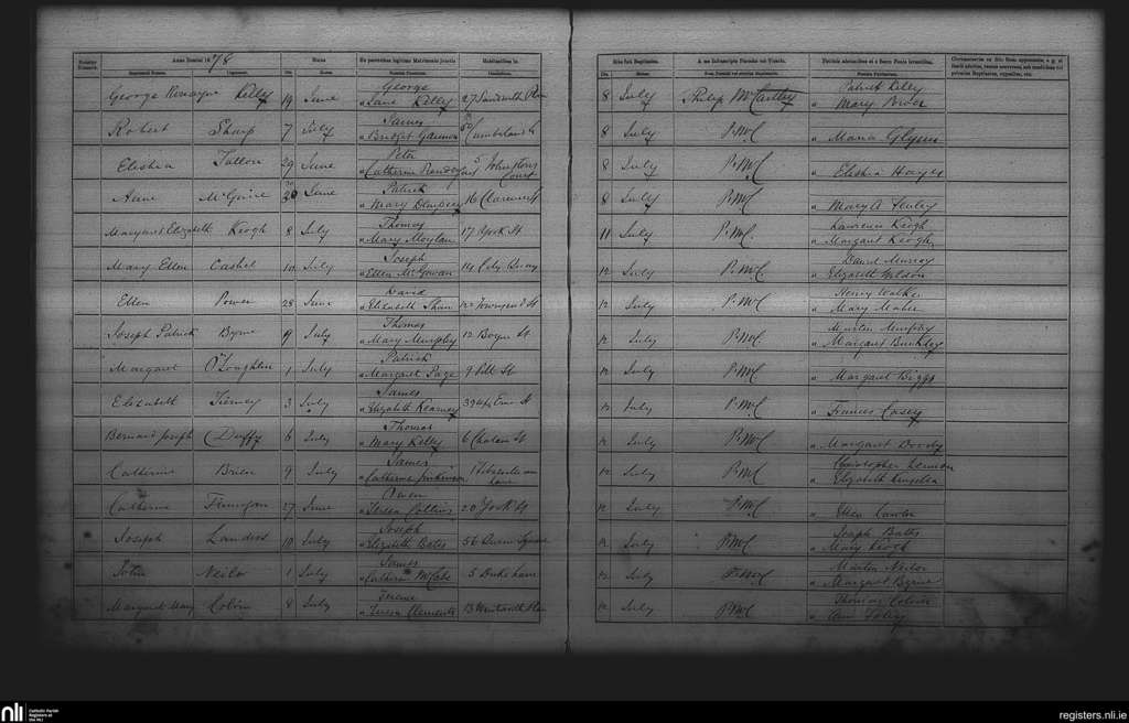 St. Andrew's, Dublin city; County of Dublin; Archdiocese of Dublin. Baptisms, July 1878