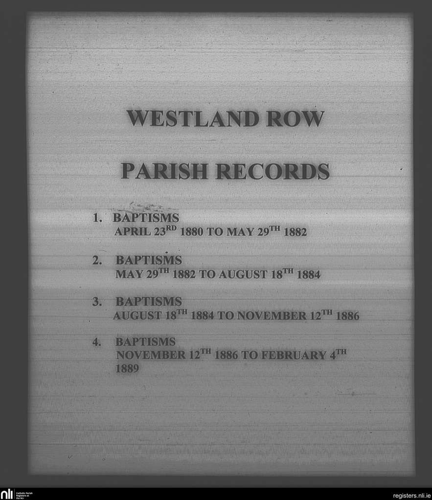 St. Andrew's, Dublin city; County of Dublin; Archdiocese of Dublin. Baptisms