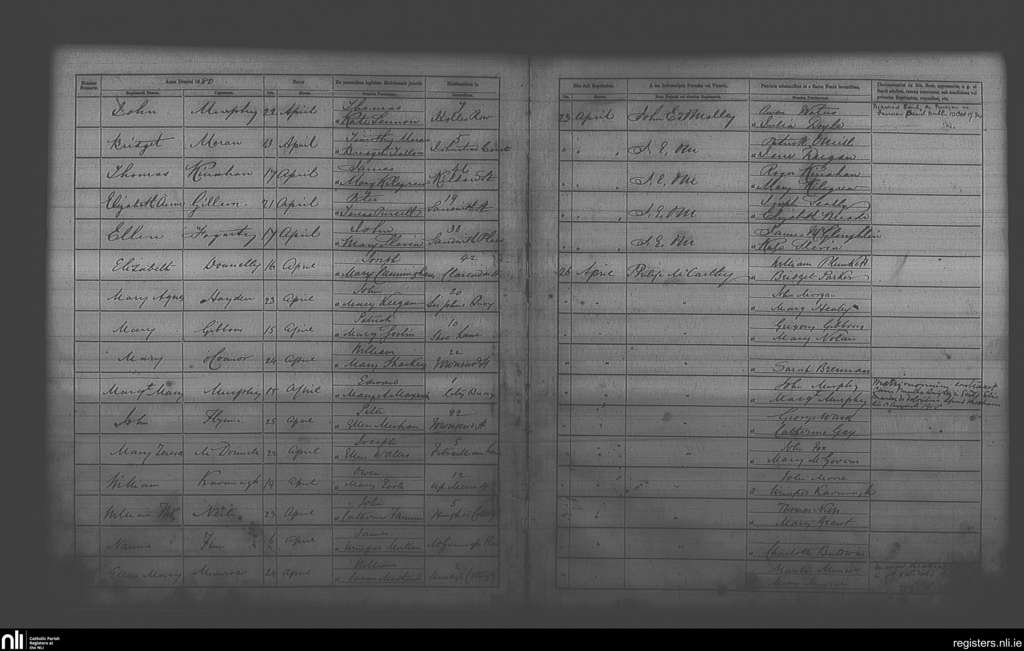 St. Andrew's, Dublin city; County of Dublin; Archdiocese of Dublin. Baptisms, Apr. 1880