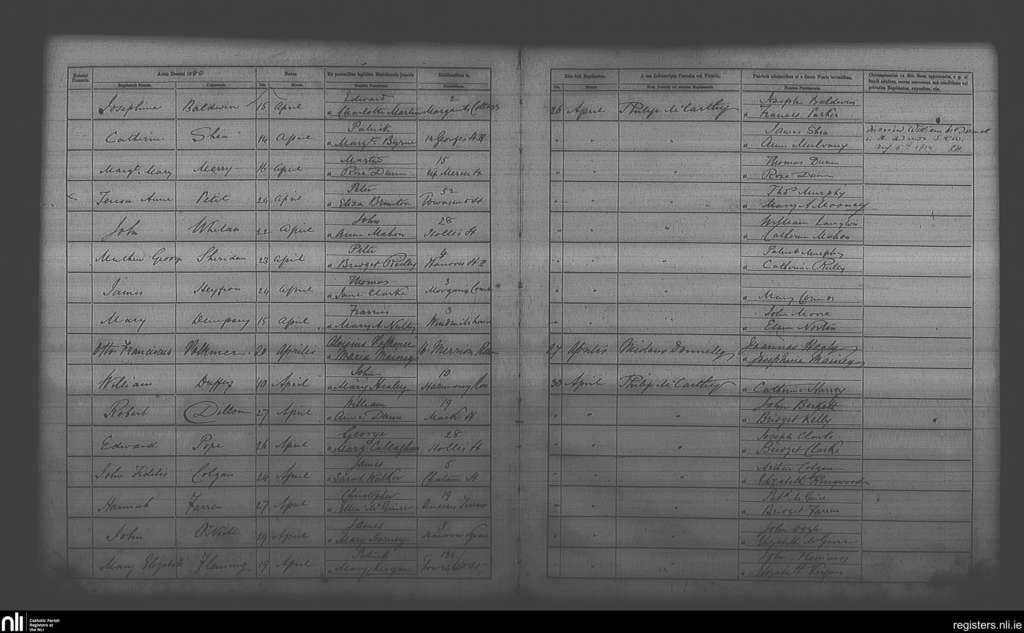 St. Andrew's, Dublin city; County of Dublin; Archdiocese of Dublin. Baptisms, Apr. 1880
