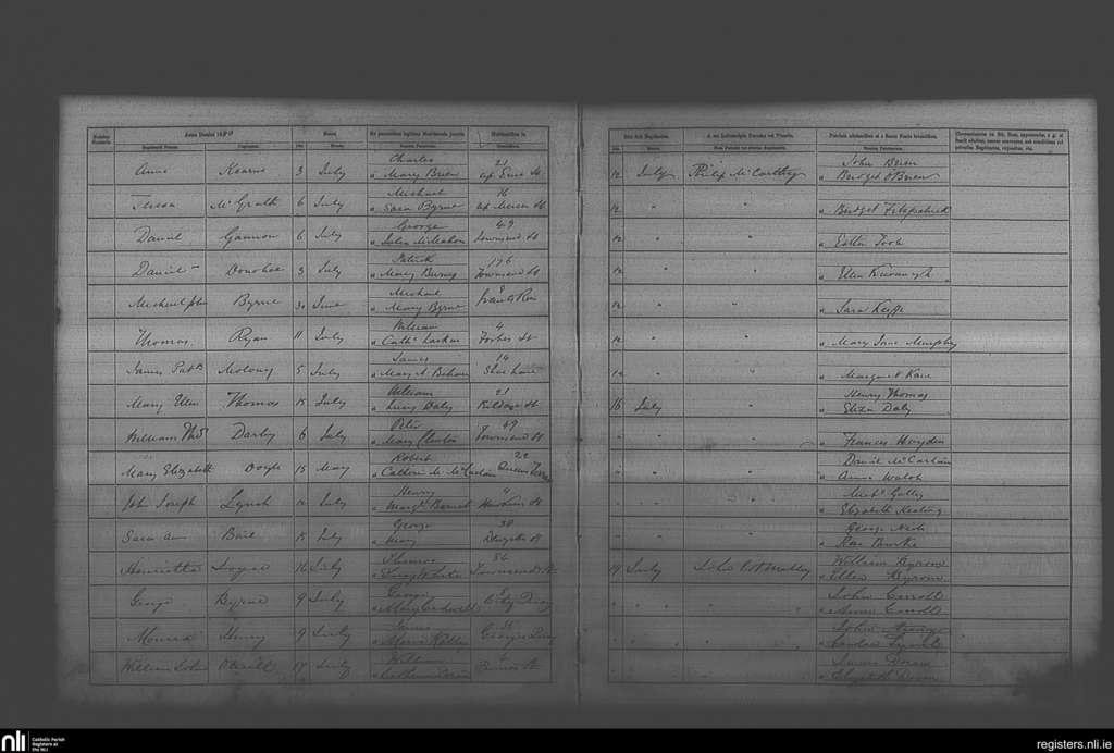 St. Andrew's, Dublin city; County of Dublin; Archdiocese of Dublin. Baptisms, July 1880