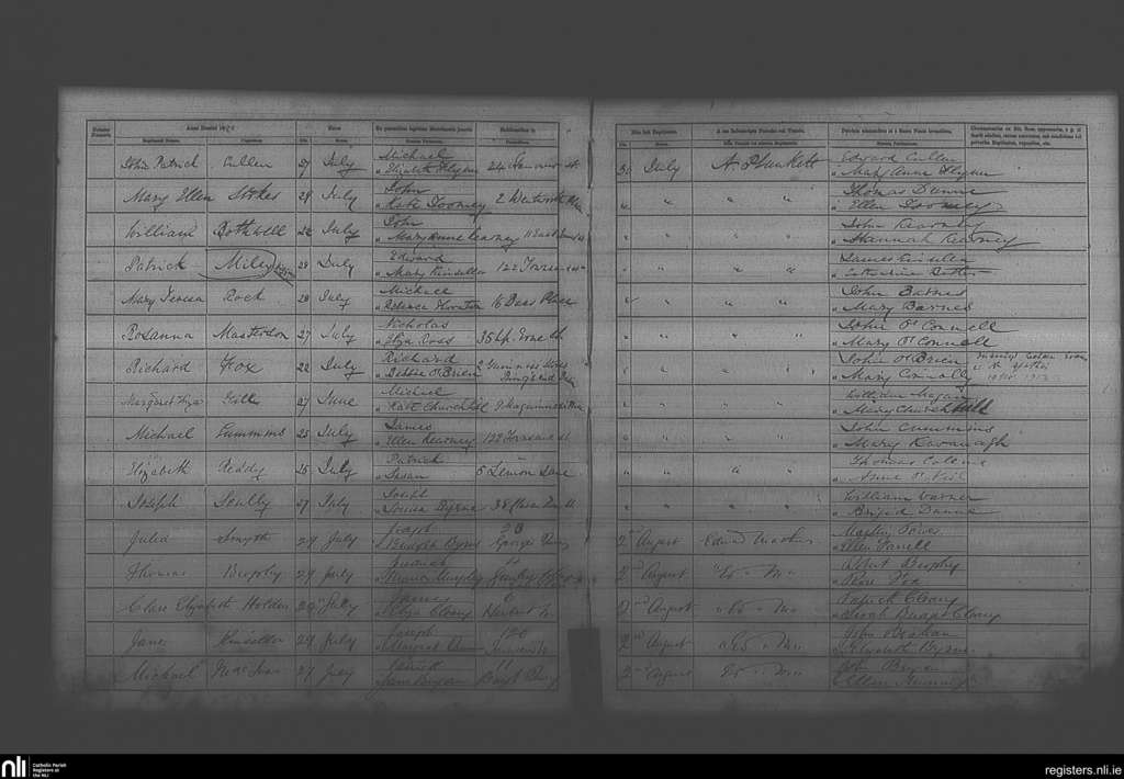 St. Andrew's, Dublin city; County of Dublin; Archdiocese of Dublin. Baptisms, July 1880 to Aug. 1880