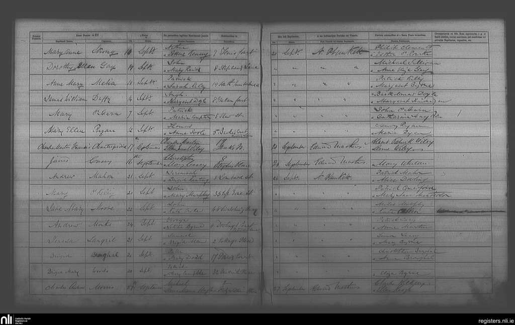 St. Andrew's, Dublin city; County of Dublin; Archdiocese of Dublin. Baptisms, Sep. 1880
