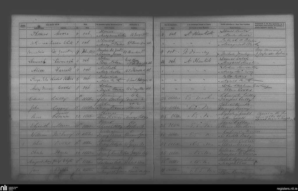 St. Andrew's, Dublin city; County of Dublin; Archdiocese of Dublin. Baptisms, Oct. 1880