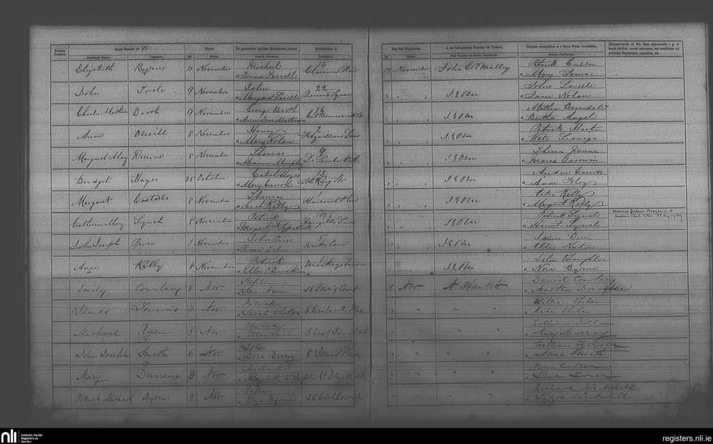 St. Andrew's, Dublin city; County of Dublin; Archdiocese of Dublin. Baptisms, Nov. 1880