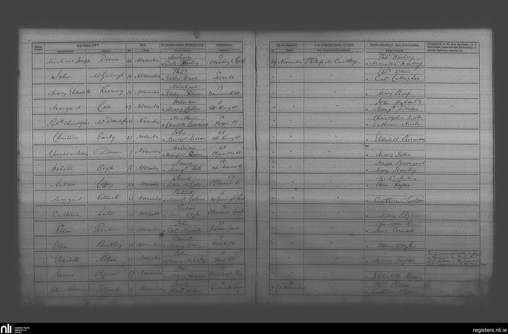 St. Andrew's, Dublin city; County of Dublin; Archdiocese of Dublin. Baptisms, Nov. 1880 to Dec. 1880