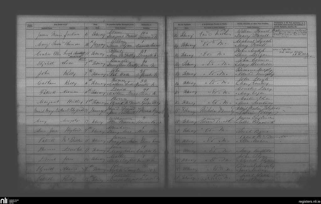 St. Andrew's, Dublin city; County of Dublin; Archdiocese of Dublin. Baptisms, Feb. 1881