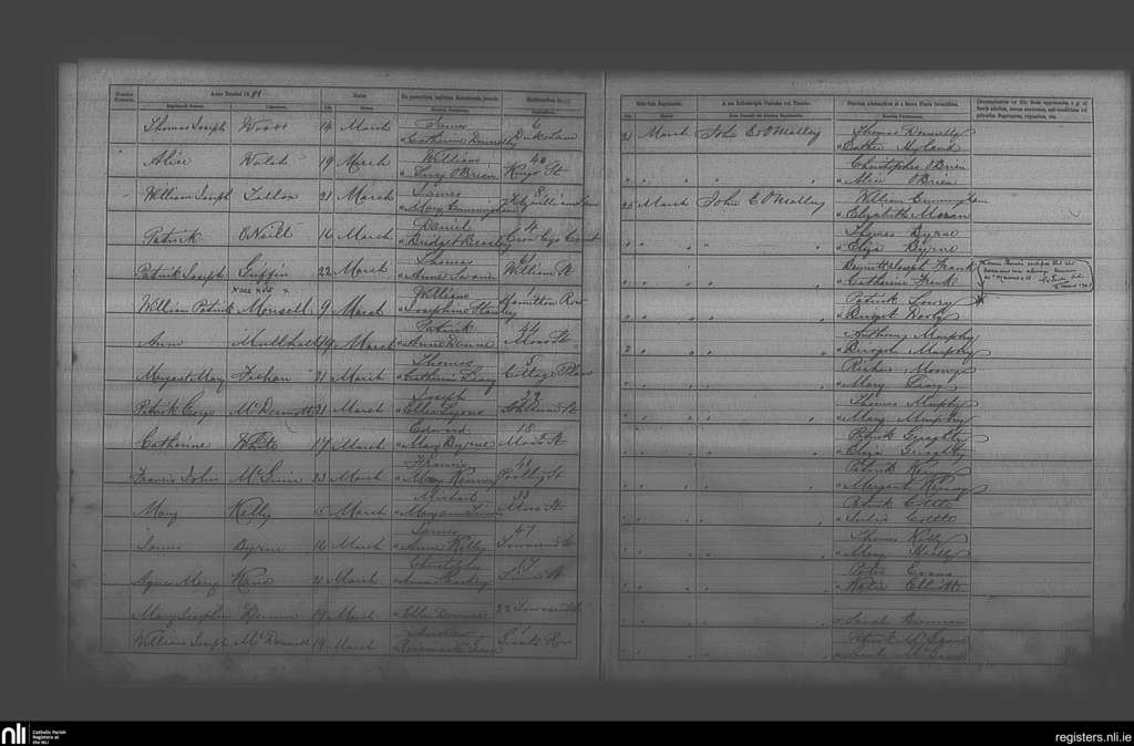 St. Andrew's, Dublin city; County of Dublin; Archdiocese of Dublin. Baptisms, Mar. 1881