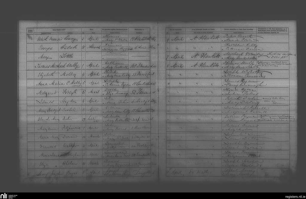 St. Andrew's, Dublin city; County of Dublin; Archdiocese of Dublin. Baptisms, Apr. 1881