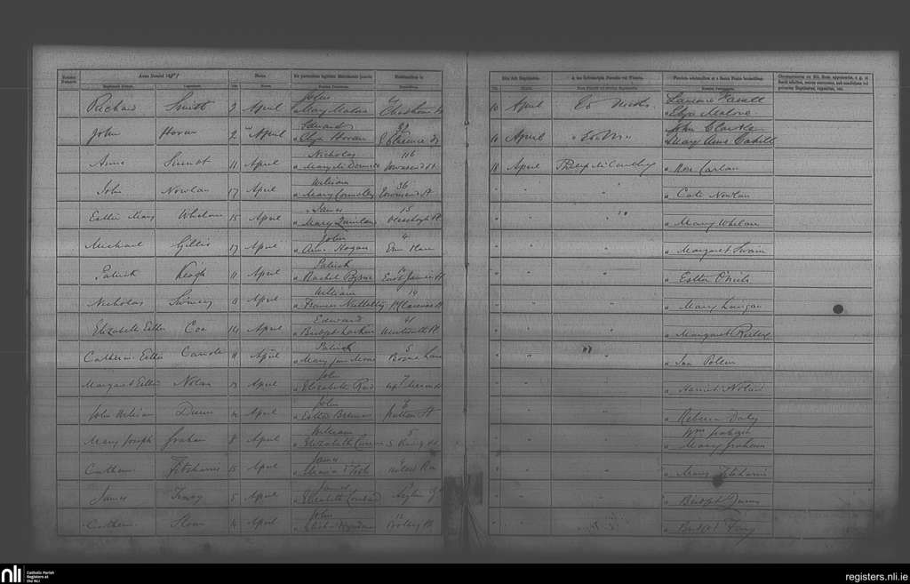 St. Andrew's, Dublin city; County of Dublin; Archdiocese of Dublin. Baptisms, Apr. 1881