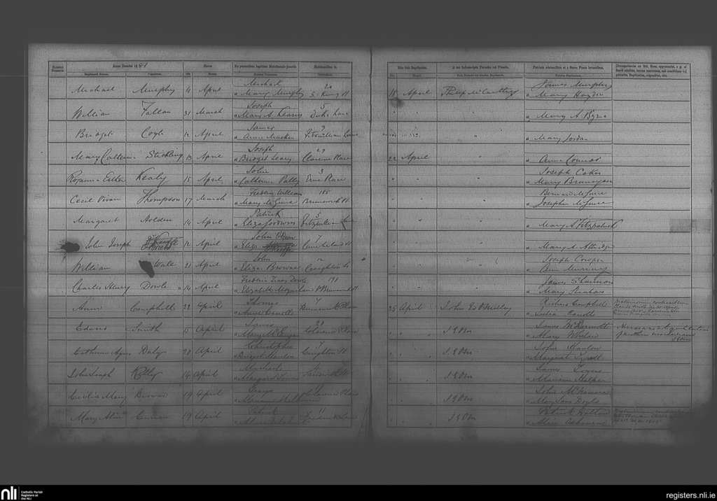 St. Andrew's, Dublin city; County of Dublin; Archdiocese of Dublin. Baptisms, Apr. 1881
