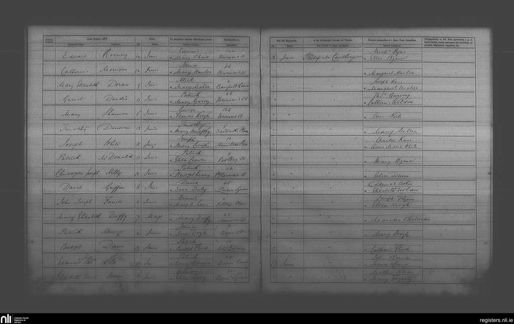 St. Andrew's, Dublin city; County of Dublin; Archdiocese of Dublin. Baptisms, June 1881