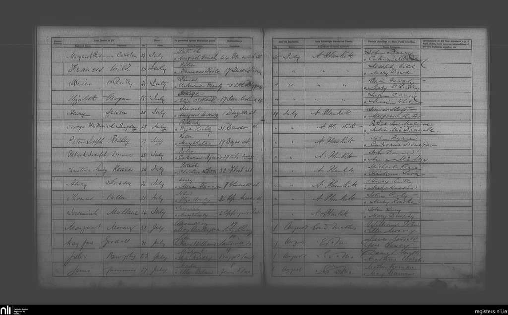 St. Andrew's, Dublin city; County of Dublin; Archdiocese of Dublin. Baptisms, July 1881 to Aug. 1881