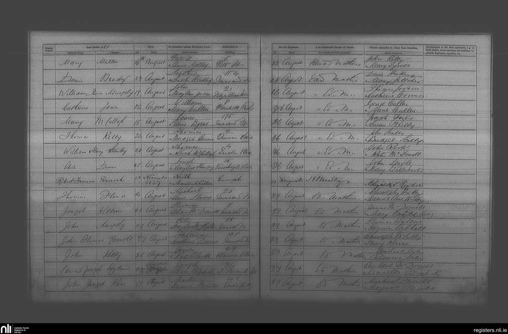St. Andrew's, Dublin city; County of Dublin; Archdiocese of Dublin. Baptisms, Aug. 1881