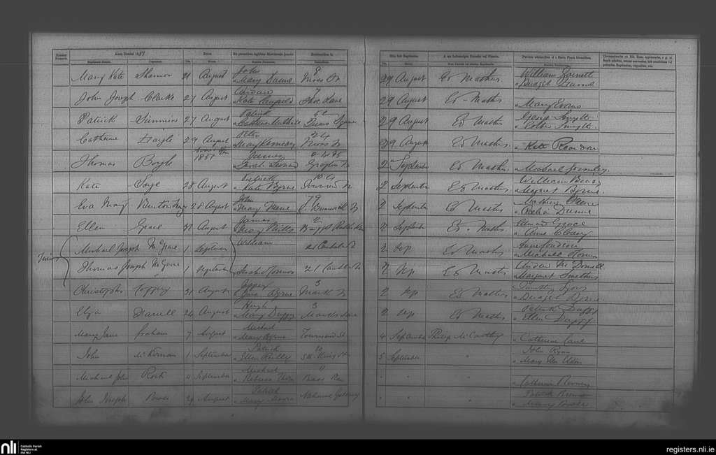 St. Andrew's, Dublin city; County of Dublin; Archdiocese of Dublin. Baptisms, Aug. 1881 to Sep. 1881