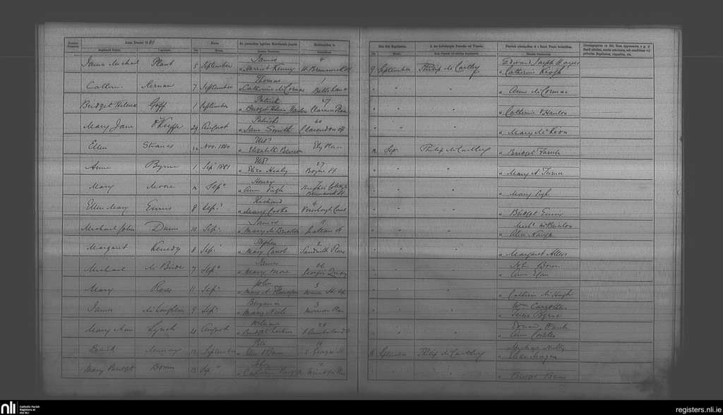 St. Andrew's, Dublin city; County of Dublin; Archdiocese of Dublin. Baptisms, Sep. 1881