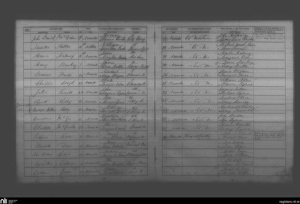 St. Andrew's, Dublin city; County of Dublin; Archdiocese of Dublin. Baptisms, Nov. 1881