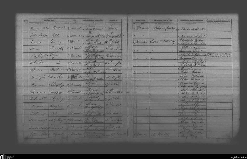 St. Andrew's, Dublin city; County of Dublin; Archdiocese of Dublin. Baptisms, Dec. 1881