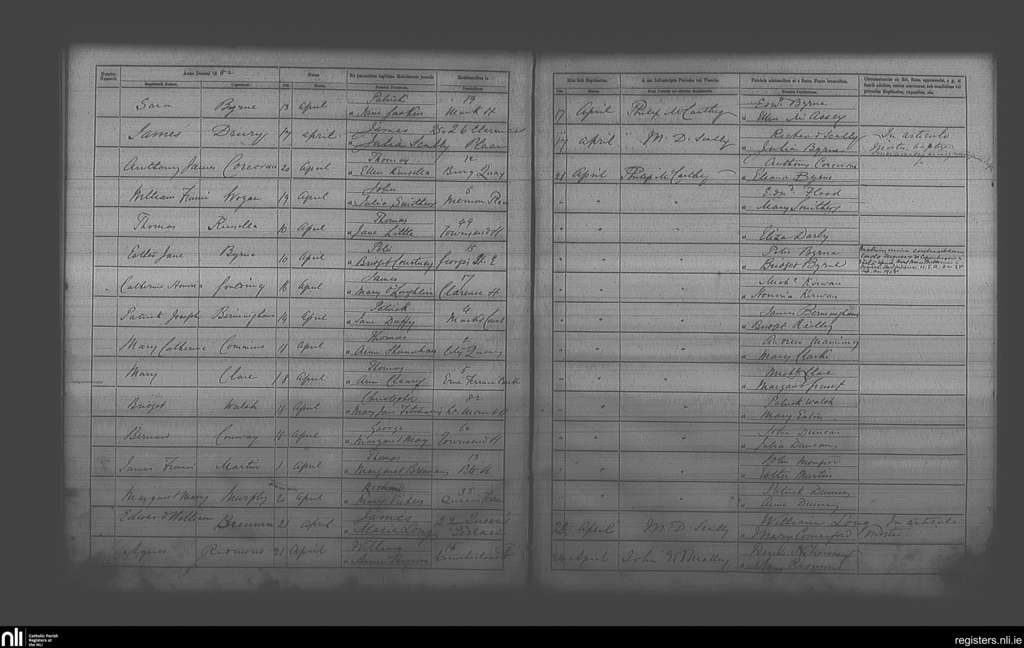 St. Andrew's, Dublin city; County of Dublin; Archdiocese of Dublin. Baptisms, Apr. 1882