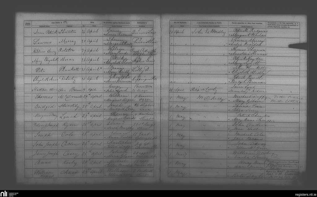 St. Andrew's, Dublin city; County of Dublin; Archdiocese of Dublin. Baptisms, Apr. 1882 to May 1882