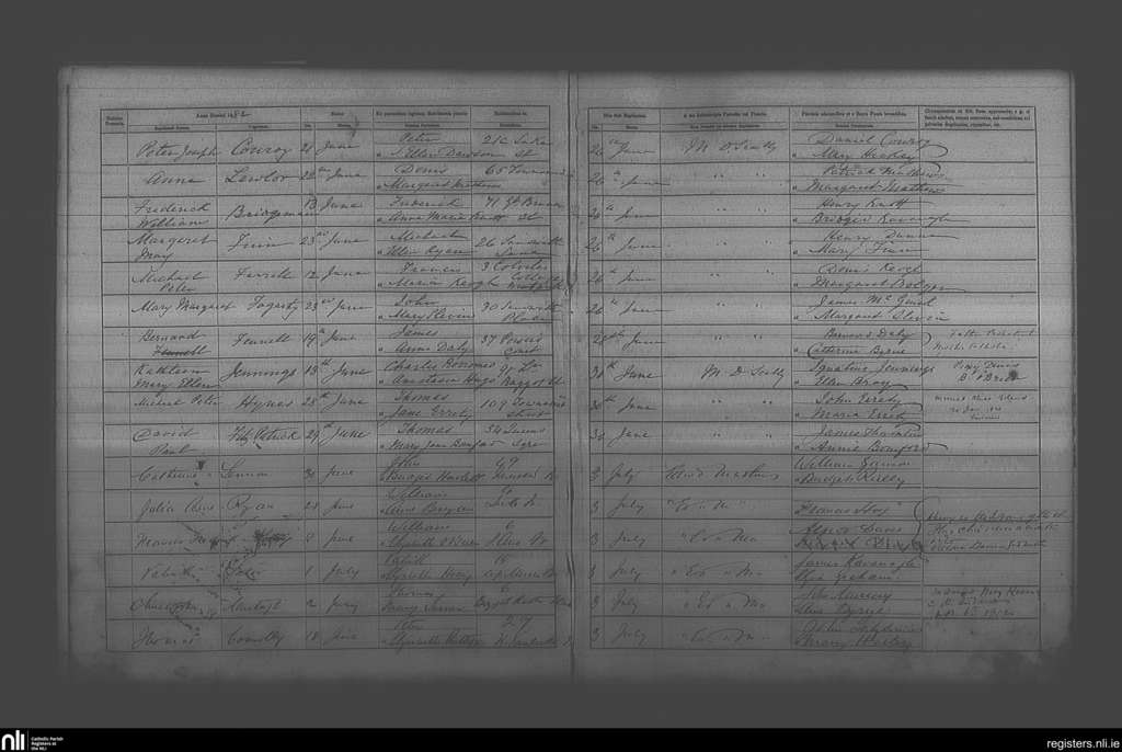 St. Andrew's, Dublin city; County of Dublin; Archdiocese of Dublin. Baptisms, June 1882 to July 1882