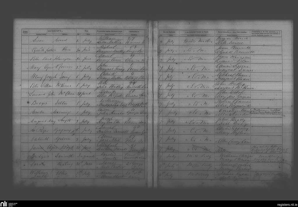 St. Andrew's, Dublin city; County of Dublin; Archdiocese of Dublin. Baptisms, July 1882