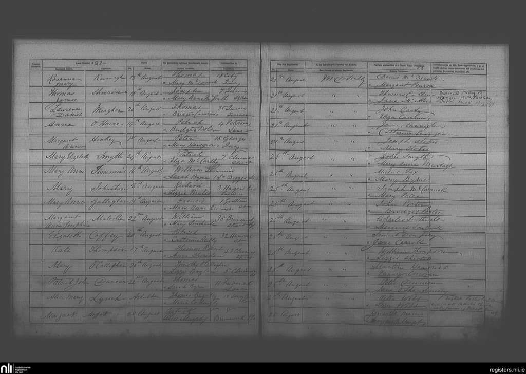St. Andrew's, Dublin city; County of Dublin; Archdiocese of Dublin. Baptisms, Aug. 1882