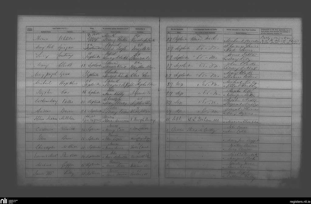 St. Andrew's, Dublin city; County of Dublin; Archdiocese of Dublin. Baptisms, Sep. 1882 to Oct. 1882
