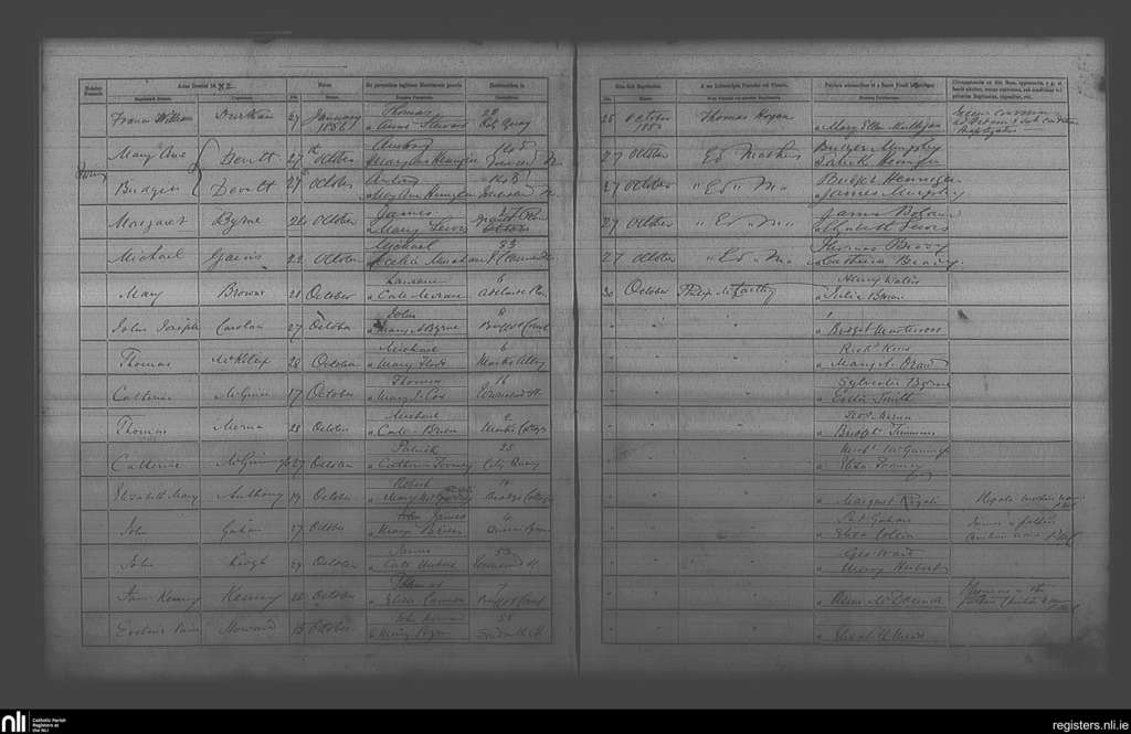 St. Andrew's, Dublin city; County of Dublin; Archdiocese of Dublin. Baptisms, Oct. 1882