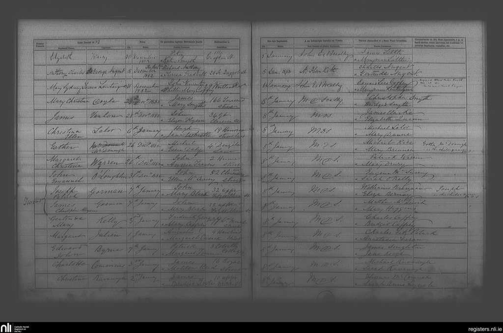 St. Andrew's, Dublin city; County of Dublin; Archdiocese of Dublin. Baptisms, Jan. 1883