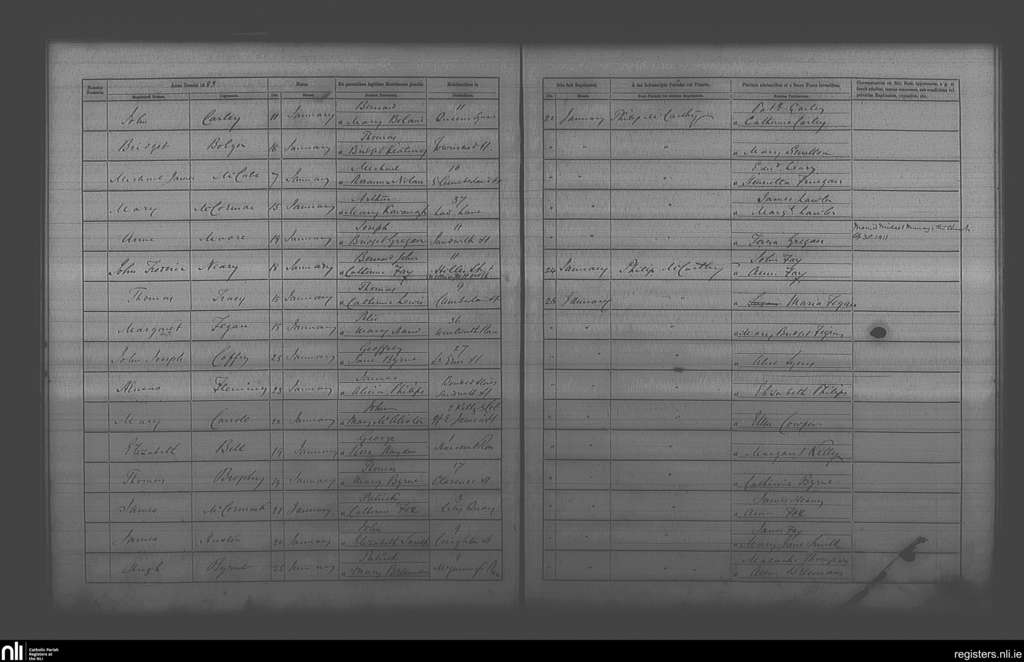 St. Andrew's, Dublin city; County of Dublin; Archdiocese of Dublin. Baptisms, Jan. 1883