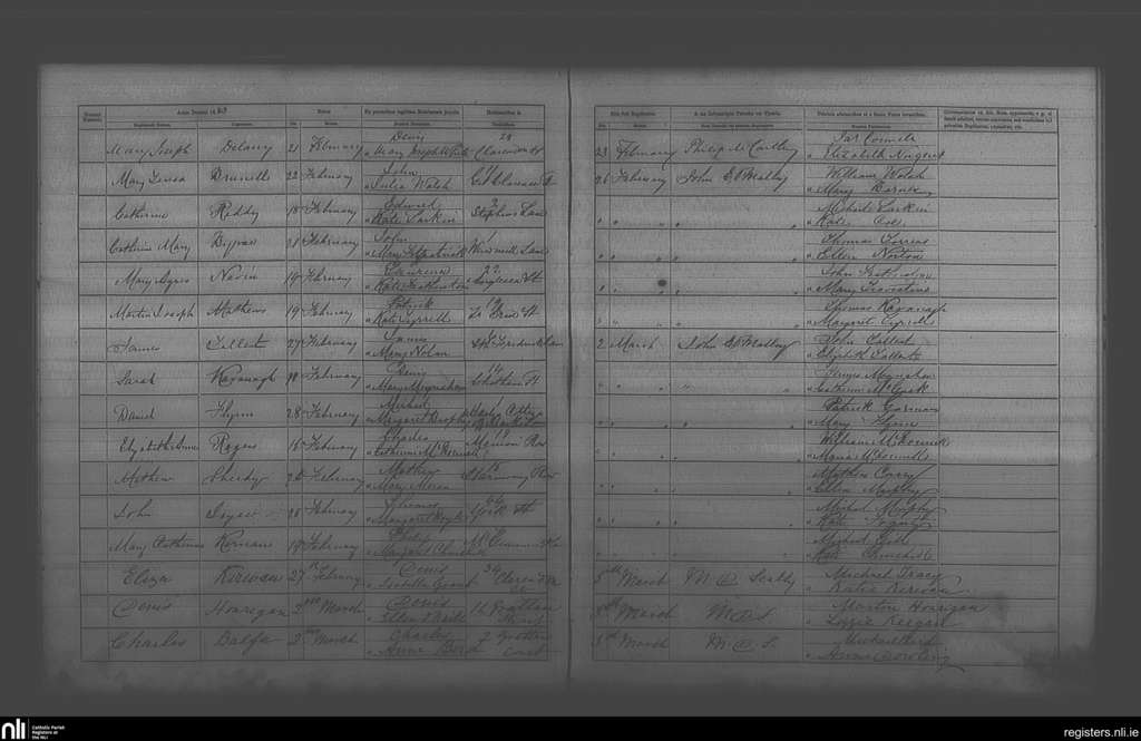 St. Andrew's, Dublin city; County of Dublin; Archdiocese of Dublin. Baptisms, Feb. 1883 to Mar. 1883
