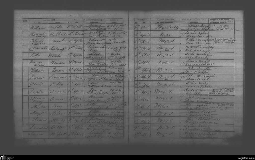St. Andrew's, Dublin city; County of Dublin; Archdiocese of Dublin. Baptisms, Apr. 1883