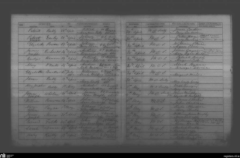 St. Andrew's, Dublin city; County of Dublin; Archdiocese of Dublin. Baptisms, Apr. 1883 to May 1883