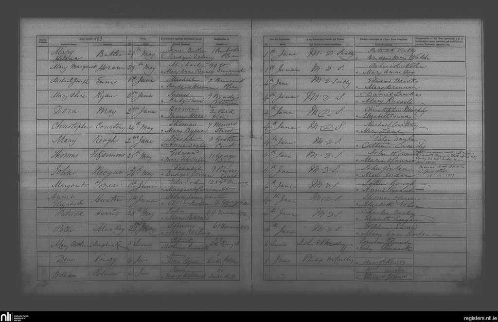 St. Andrew's, Dublin city; County of Dublin; Archdiocese of Dublin. Baptisms, June 1883