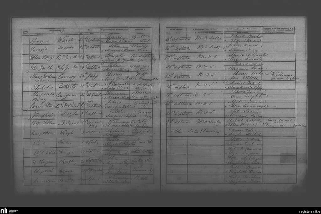 St. Andrew's, Dublin city; County of Dublin; Archdiocese of Dublin. Baptisms, Sep. 1883 to Oct. 1883