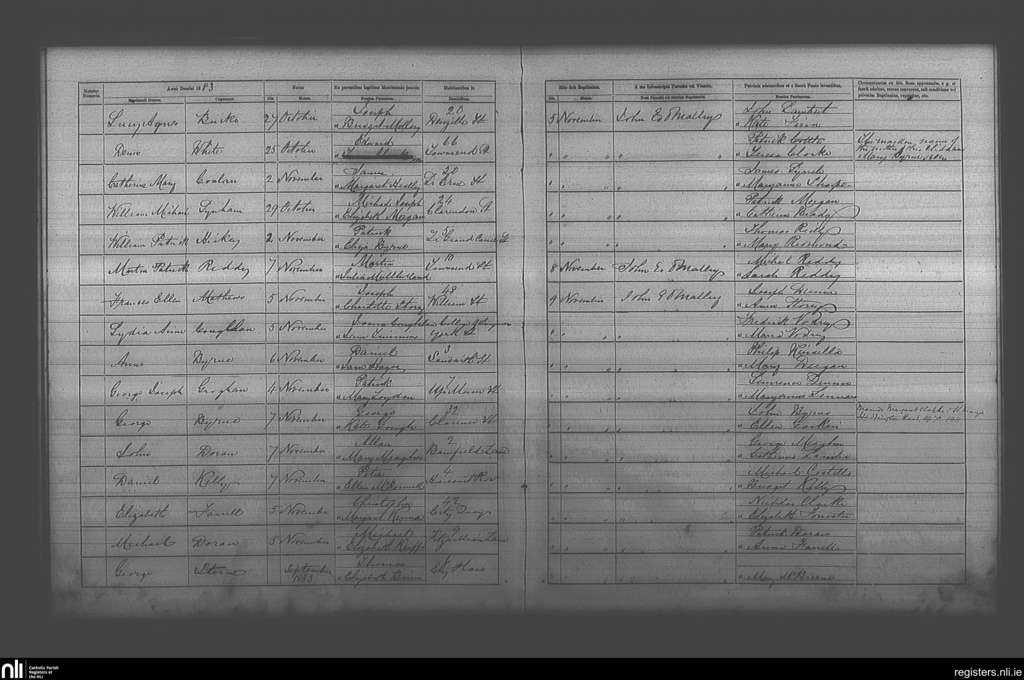 St. Andrew's, Dublin city; County of Dublin; Archdiocese of Dublin. Baptisms, Nov. 1883