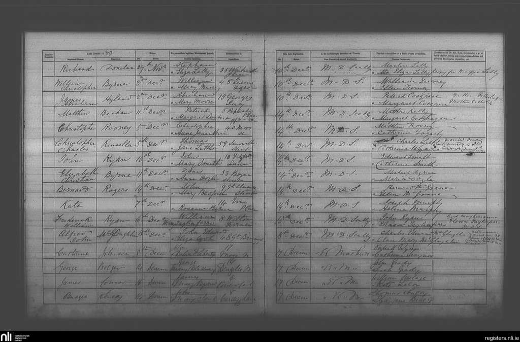 St. Andrew's, Dublin city; County of Dublin; Archdiocese of Dublin. Baptisms, Dec. 1883