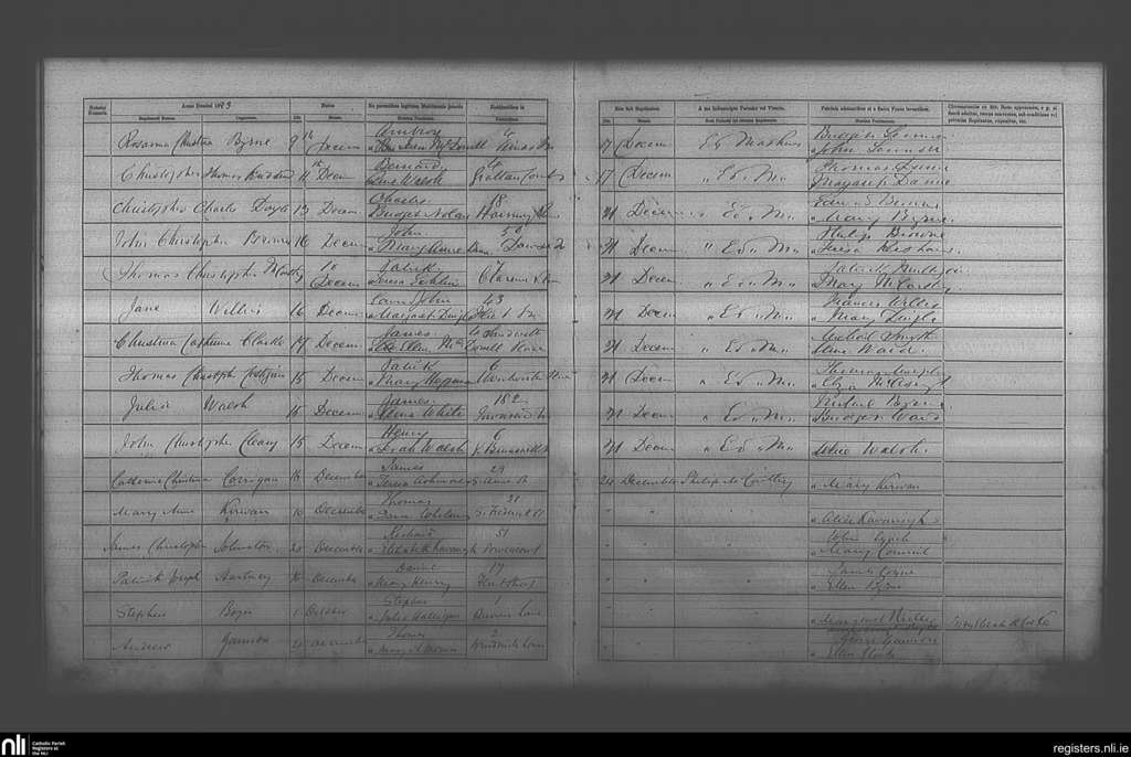 St. Andrew's, Dublin city; County of Dublin; Archdiocese of Dublin. Baptisms, Dec. 1883